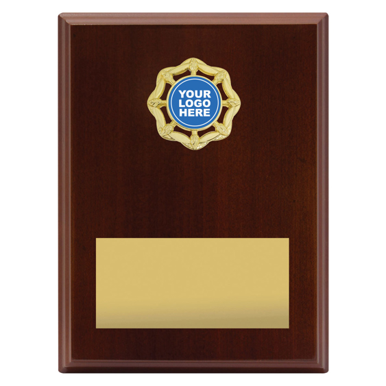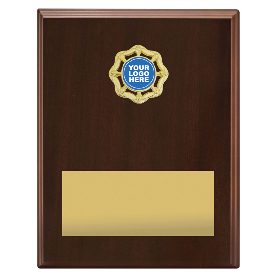 Olive Plaques offer budget plaque awards with classic walnut plaques and central space for your custom logo.
