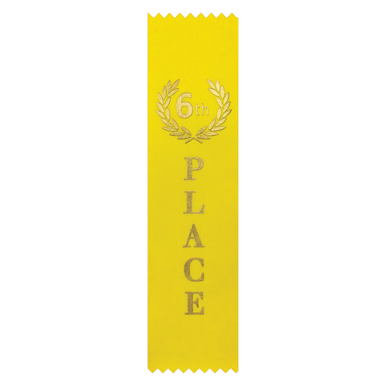 Place Ribbons of high quality part of the extensive range of ribbons and medals on offer. Sixth Place - 6th Place - finished in yellow. Other place and slogan designs available.