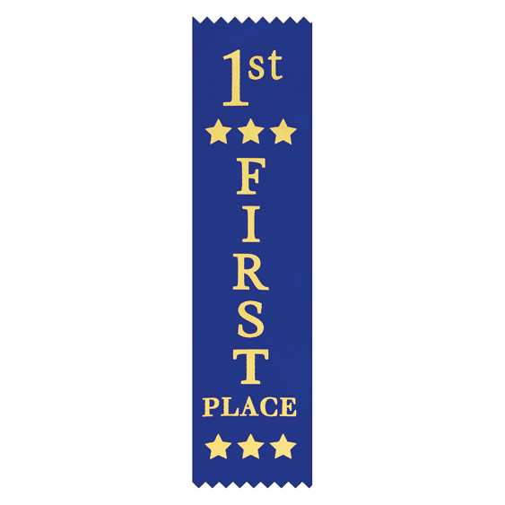 Place Ribbons of high quality part of the extensive range of ribbons and medals on offer. First Place - 1st Place - finished in blue. Other designs available.