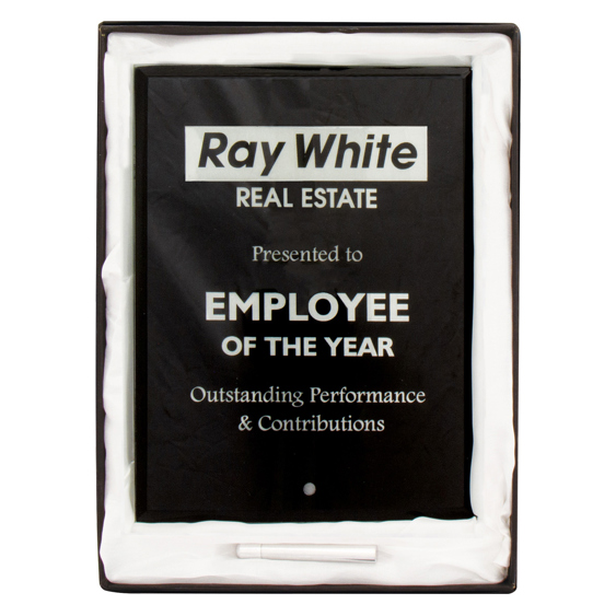 Craft Plaques offer an affordable glass award option in different colours to suit your requirements. Budget black plaques designed to showcase your engraving.