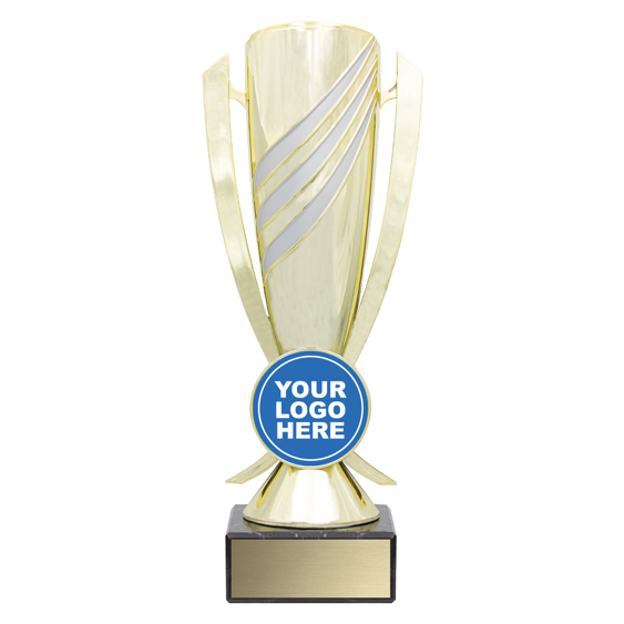 Simple yet effective trophy - iconic cup design with prime position for your 50mm logo.