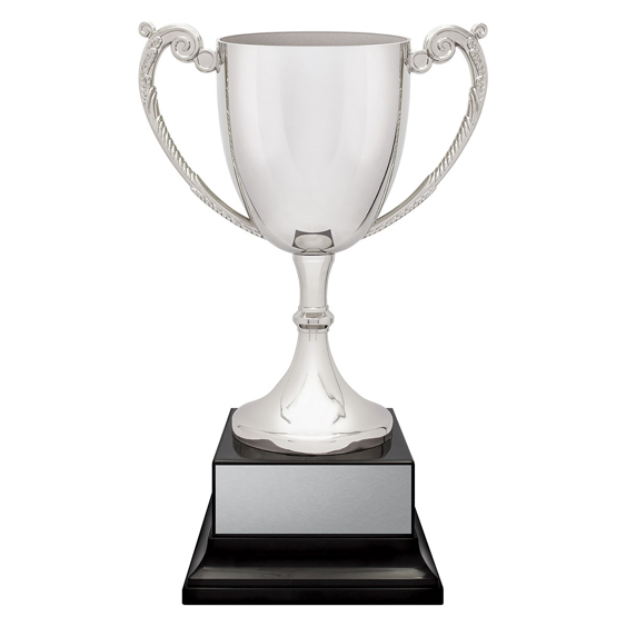 Elegant and traditional style of prestige cup of the highest quality. Assembled nickle plated cups on heavy black premium bases for your engraving. Available in various sizes.