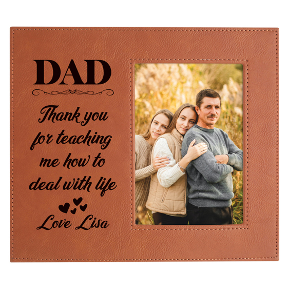 Display treasured memories and also personalise the leatherette photo frame with a heartfelt message.