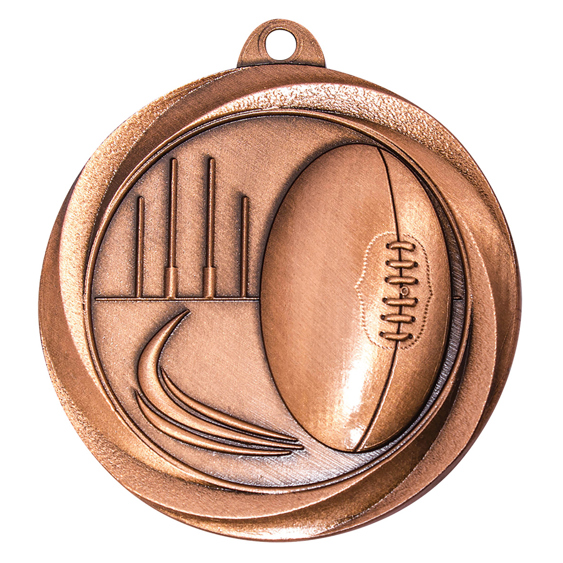 Economic series of medals to suit your budget requirements - the 3D Medal series presents excellently designed medals with high relief and detail to represent your sport or activity. Footy theme design features exciting combination of ball and posts - space for your engraving on the back of every medal. Plenty of medal box and ribbon options to complete your selection.