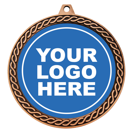 Elegantly designed medal that frames your custom logo to celebrate your event or achievement.