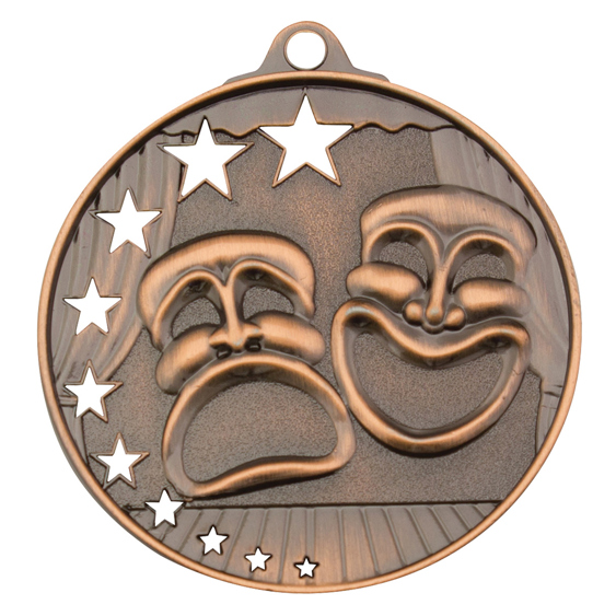 Bright gold, silver and bronze medals for Drama. A popular medal series, the Star Series features a unique hollow multi-star design and extra thick edge. There is a rectangle panel on the back of each medal for your engraving. Ribbons available in all colours and plenty of medal boxes to suit.