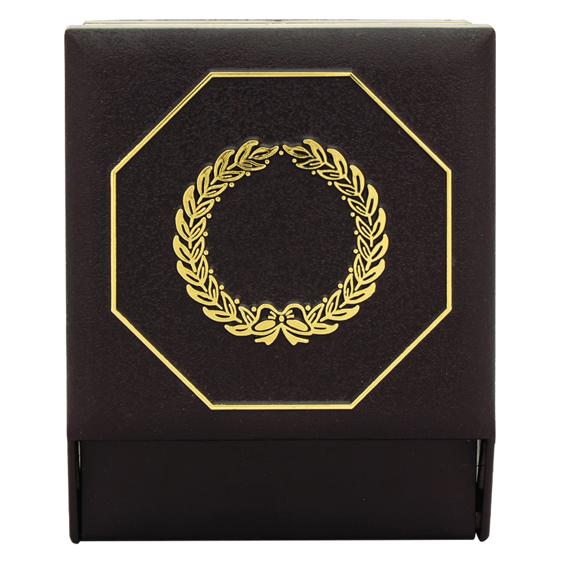 Sturdy black medal box with gold trim and wreath front to hold a 25mm insert - ideal for customisation or choose an insert for your sport or activity from the generic range. To suit common style medal 52mm diameter.