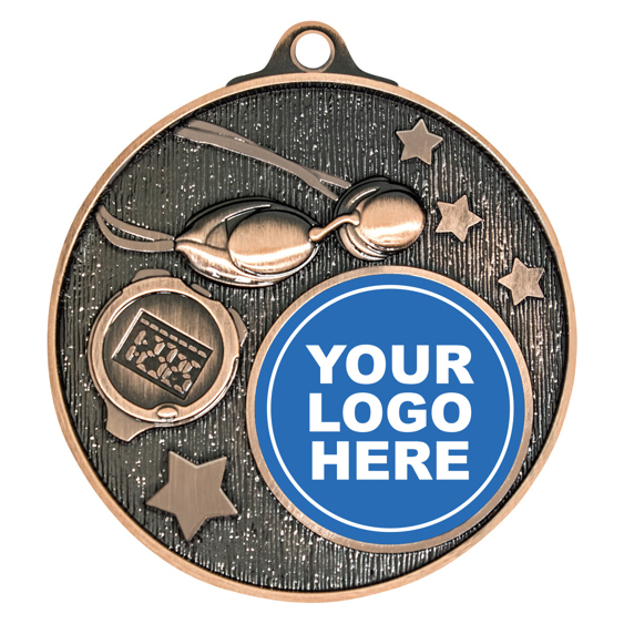 Club Medals designed to specifically show off your custom logo insert. Medal design features iconic elements for Swimming such as googles and stop-watch. Ideal for various events and competitions - available in gold, silver and bronze.