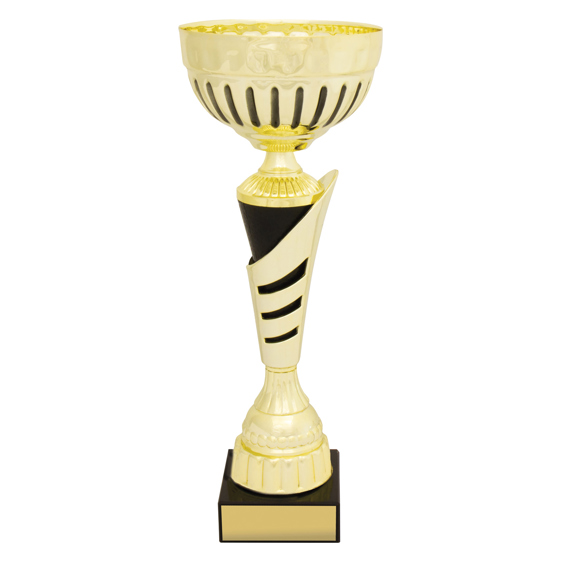 Gold & black trophy cups offer a different design for your event trophies. Multiple sizes on offer to cover different award categories.