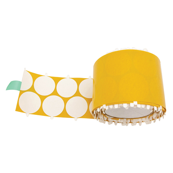 These ultra thin disks are pre-cut for excellent bonding to medallions, trim, emblems, and ribbons. These disks offer permanent bonding with easy removal by the extended liner tabs. Purchase 500 disks per roll.