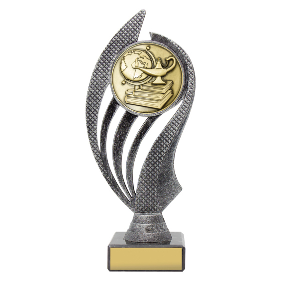 Husky series of trophies on premium black marble allows for different award options for your activity. Appealing antique silver and gold combination over number of sizes.