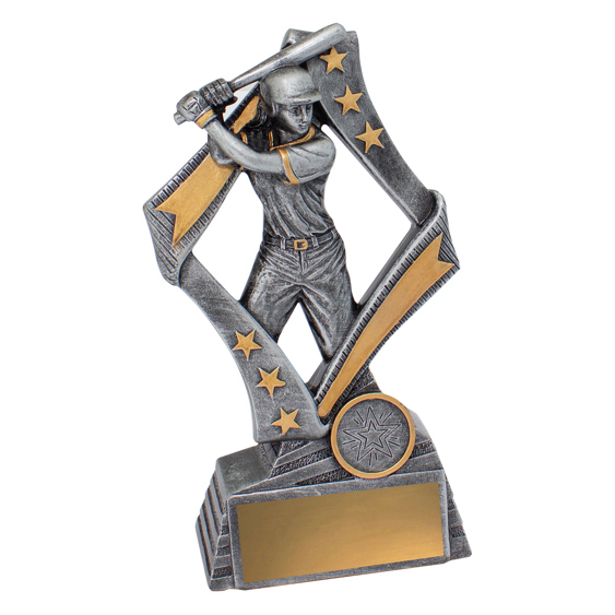 Inspiring design for your softball trophies, Flag series features batter in action and complete with classic antique silver colours. Substantial trophy with space for customisation if needed.