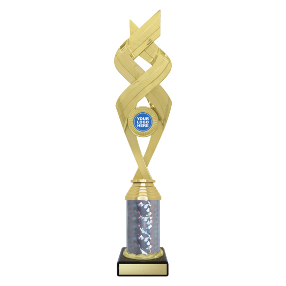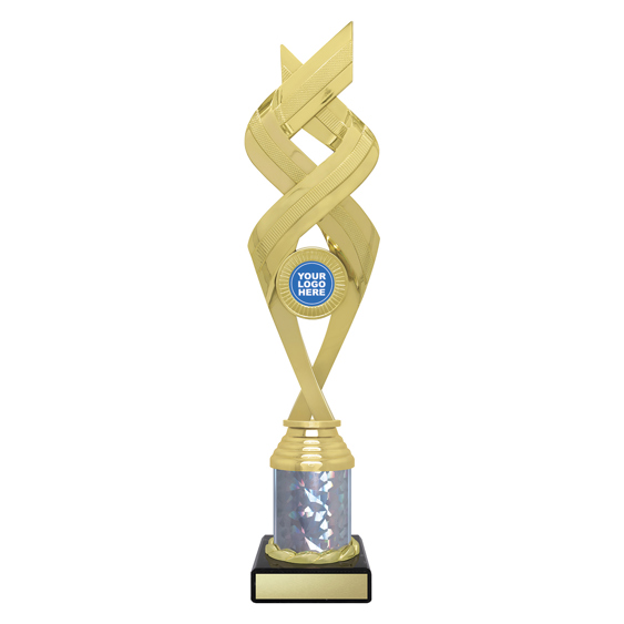 Stylish Jetstream series of holder trophies feature a complex design of intertwining elements and a central spot for your custom logo. Available in different colours.