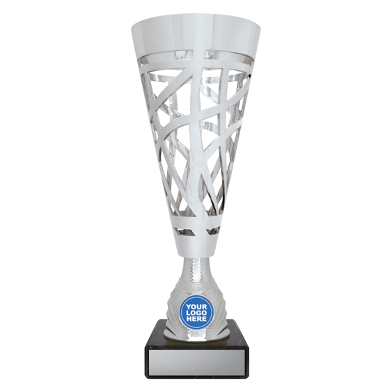 Super interesting design of trophy with swirling design plus great space for your custom insert. The Serafino trophies are available in gold or silver.