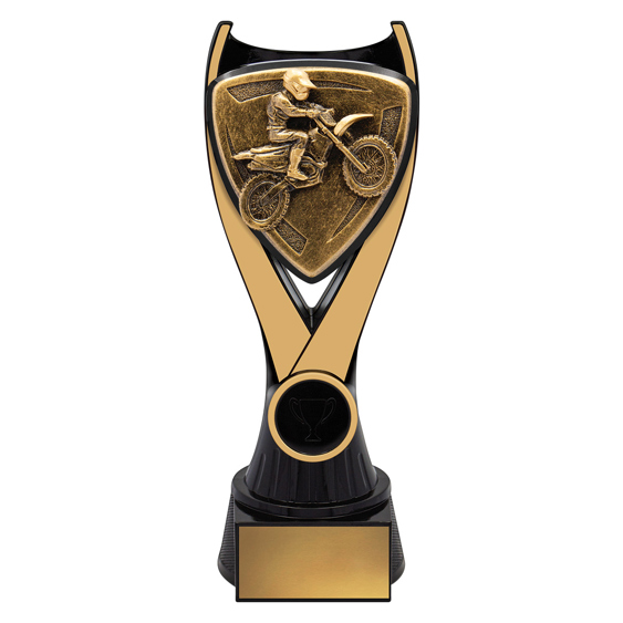 Nova series of trophies present a unique black & gold colour combination with a bold 3D type design to really celebrate the sport or activity of your awards.