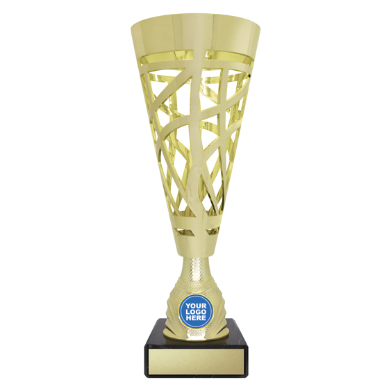 Super interesting design of trophy with swirling design plus great space for your custom insert. The Serafino trophies are available in gold or silver.