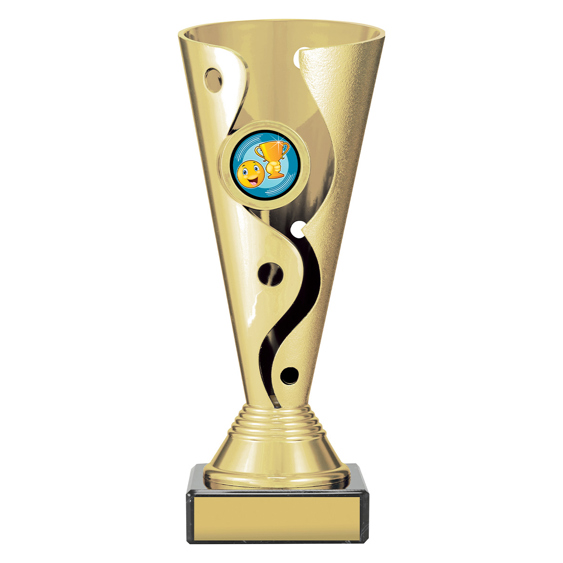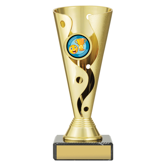 Carnival cups present a distinctive cup style trophy with attractive 3D design - on classic black marble base for your engraving - with brightly coloured insert for your sport. Trophies adaptable to your custom requirements.