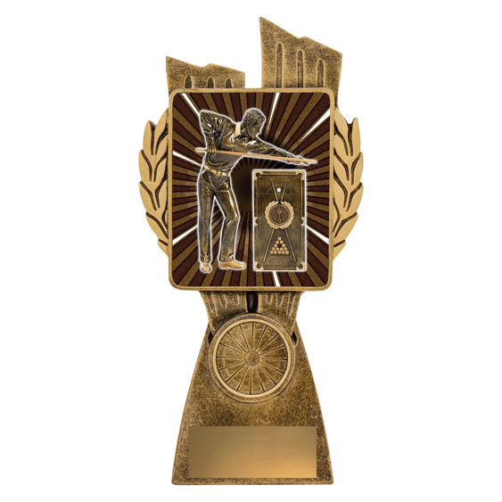 This Antique Gold Lynx Trophy is the perfect theme award for Snooker / Pool events. Featuring a classic wreath and vibrant design, trophies are customisable and available in 4 impressive sizes.