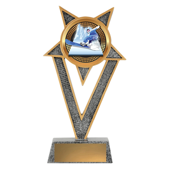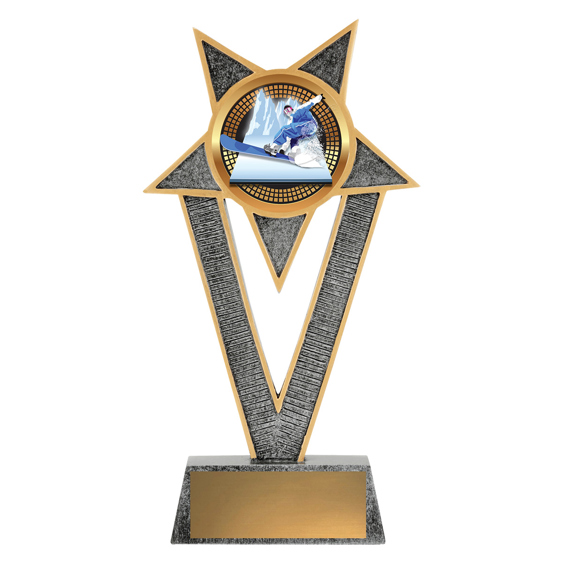 Star inspired trophy series, the Ventura offers prime position for colour insert to represent your sport.