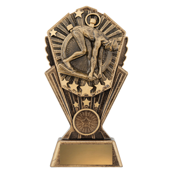 Brilliant 'Cosmos' series of male swimming trophies - available in 3 sizes with space for insert.