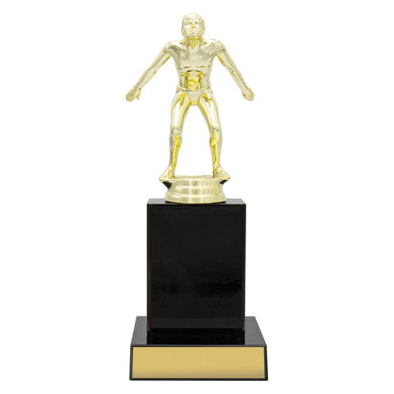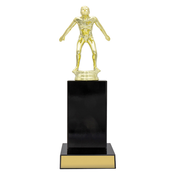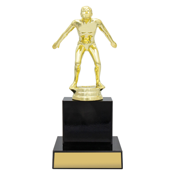 Swim figure on top of gloss black timber columns ideal for a range of awards for your club or team. Timber available in different colours. Male or female.