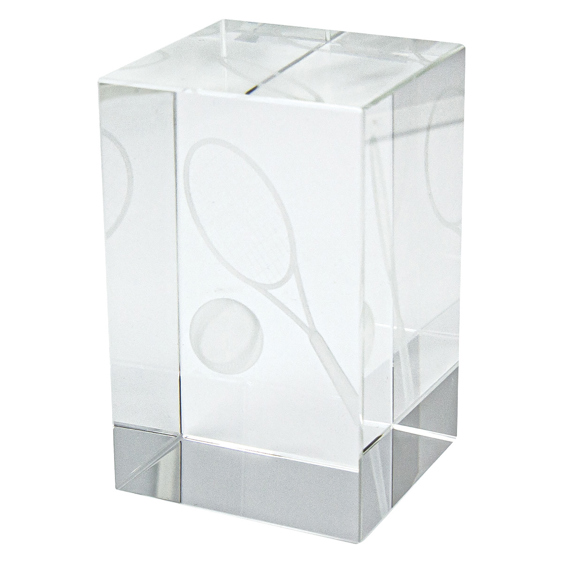 Hologram award for Tennis features 3D theme design with tennis elements - ball, racquet & net. A trusted option for various tennis events and presentations, a prestige crystal block supplied in a presentation gift box.